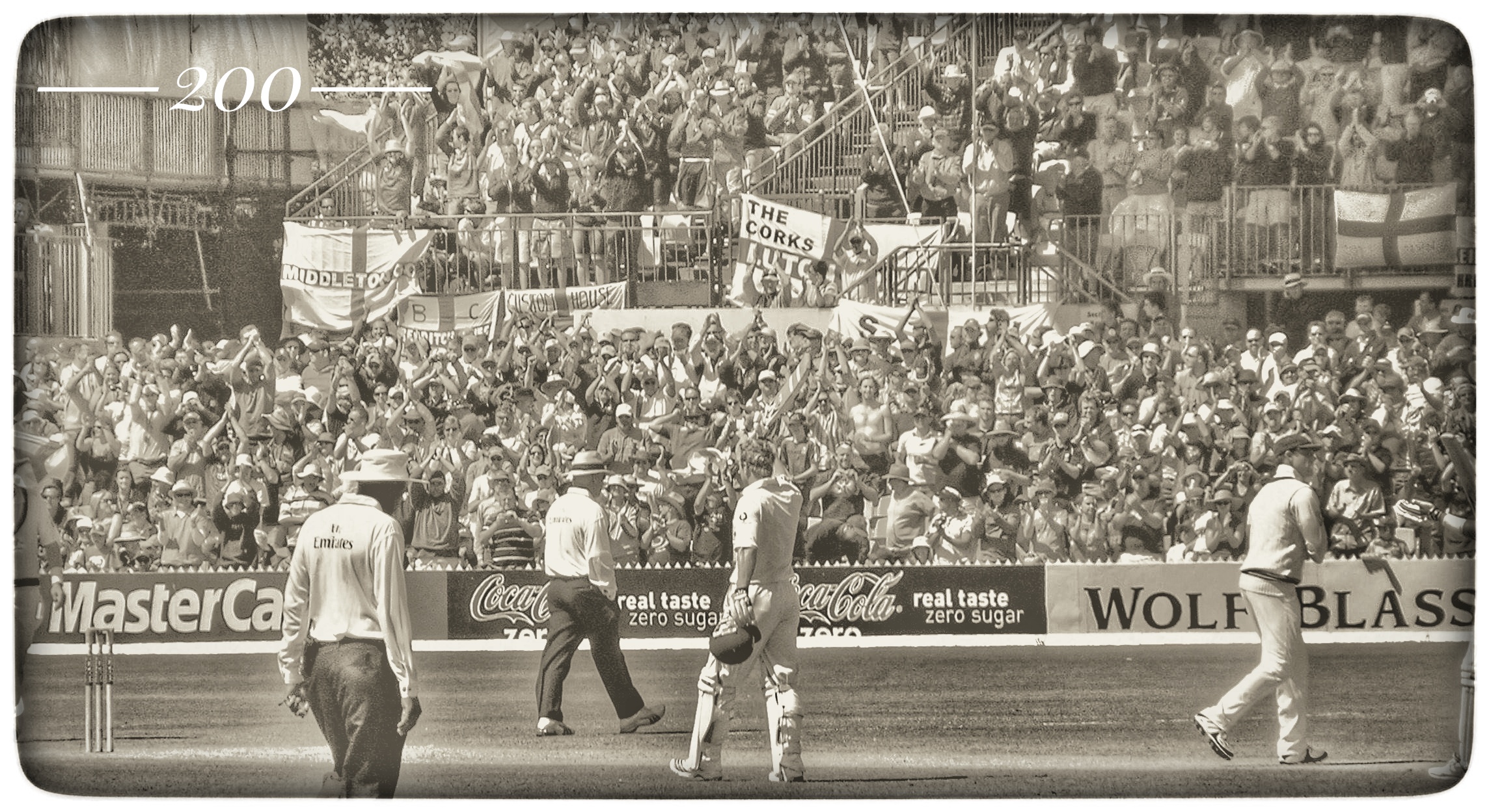 Listen to Bill Lawry’s commentary on the Adelaide video on Youtube. Even he seems delighted he got there. “Wonderful. Wonderful……. Paul Collingwood goes to 200 with a great shot”.
