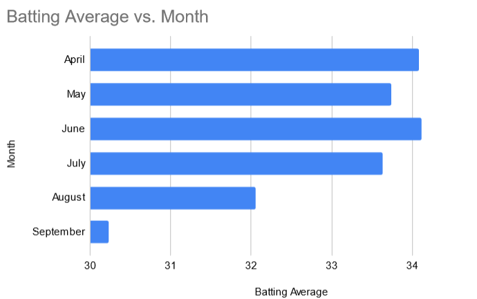 Notice how the chart begins at 30 rather than 0 days. This means that the shortest bar is 6 days whilst the longest (England) is 17 days. To a casual observer, it would seem like England played almost three times as much cricket as New Zealand and India. To compare, here is what the chart would look like if it began at 0: