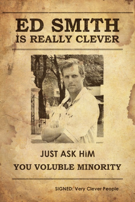 He’s yet to take up office. Of course, he’s the deputy to Clarke at the moment, so he is in office, which is why us refuseniks are greeting all this with scepticism and a great deal of care. You’re worried because if KP makes a comeback, your fox (and all those that made the decision) has been shot. So while you call this man the loose cannon of English cricket, you save your powder on Paul “outside cricket” Downton and Giles “right kind of family” Clarke. We know you can’t include James “Gary Ballance” Whitaker because he’s tight as a drum when it comes to talking. He’s about as much a loose cannon as a speak your weight machine.